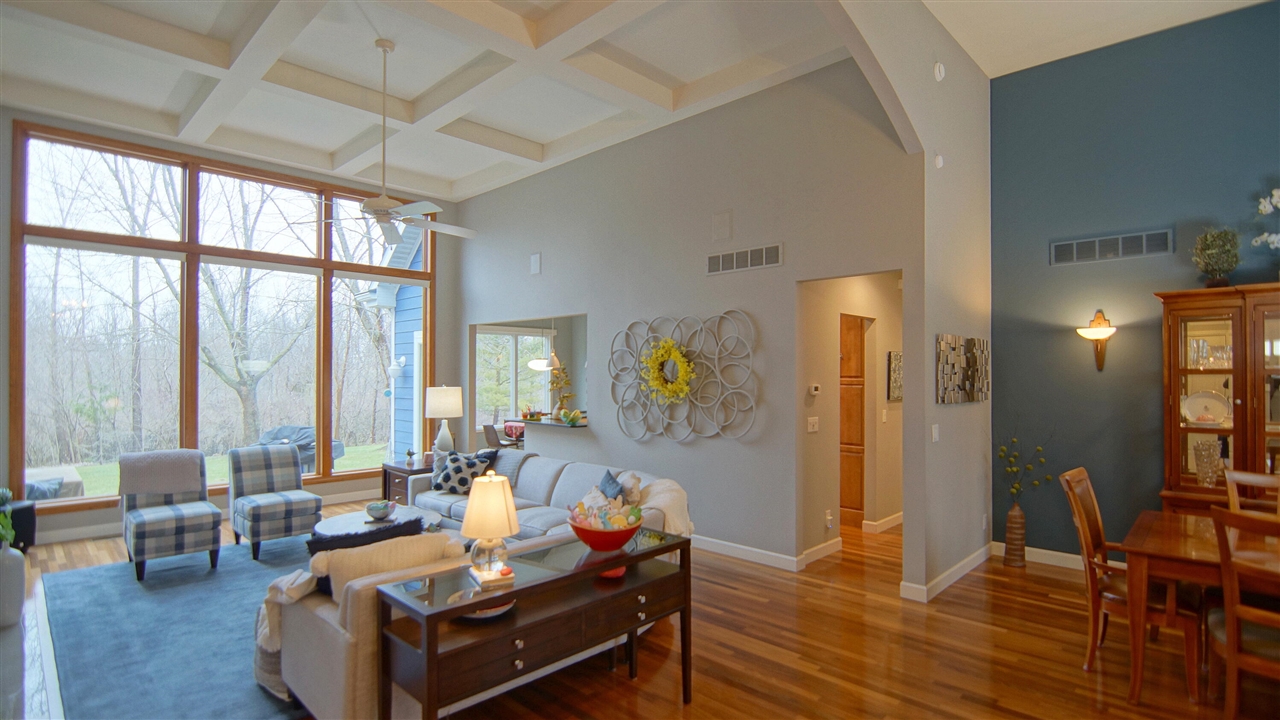 Tucked away on 8.2 beautifully wooded acres, this exceptional private estate offers a rare blend of luxury, tranquility and thoughtful design. A spring fed pond and peaceful wooded surroundings create a setting that feels like your own secluded retreat. Inside the home welcomes you with rich Brazilian cherry flooring, spacious living areas and an abundance of natural light. The living room features a natural gas fireplace and a dramatic wall of custom windows with electric blinds, perfectly framing serene views of the backyard woods and patio. The kitchen is both stylish and functional with granite countertops and soft close maple cabinetry. Here you will find cathedral ceilings throughout, and a wonderful space for entertaining. The master has double doors, an ensuite with heated floors, double closets and relaxing jacuzzi tub. Steel beam construction Built to last.